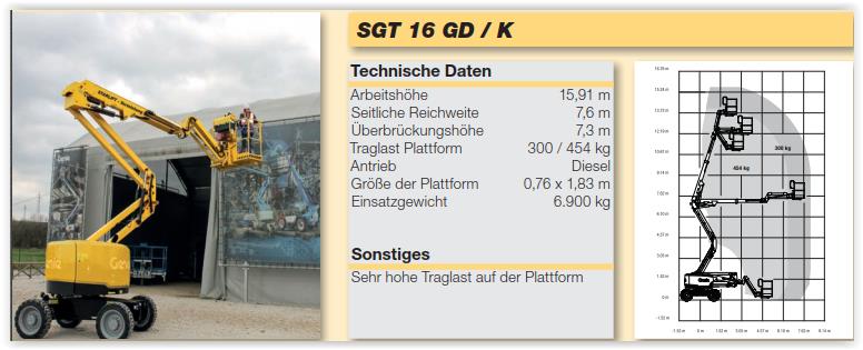Die Gelenkteleskoparbeitsbühnen SGT 16 GD mit Dieselantrieb eignen sich ideal für Bau- und
