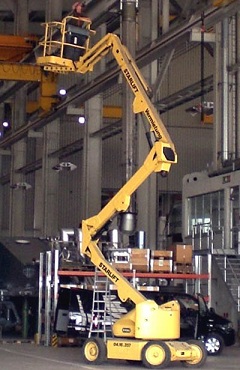 Die neuen SGT 15 E mit einem 3 D Korbarm eignen sich besonders für Montage und Wartungsarbeiten in Hallen. Diese Geräte sind kompakt in der Bauweise und verfügen über einen Korbarm der horizontal und vertikal um 140° schwenkbar ist.