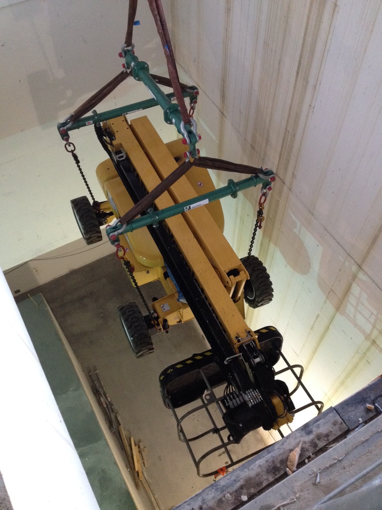Das Gerät durfte dabei aber nicht breiter als 1,0 m sein und musste eine Traglast von 350 Kg in eine Arbeitshöhe von 12,0 m bringen. STARLIFT verfügt über die genau passenden Geräte für diese speziellen Anforderungen.