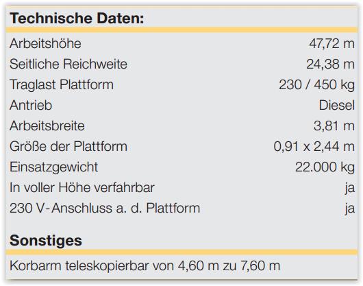 - Erreicht eine unglaubliche Arbeitshöhe von knapp 48,0 m
