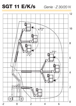 | Korbarm Horizontal 200° und vertikal 139°, Korbschwenkung 180° |