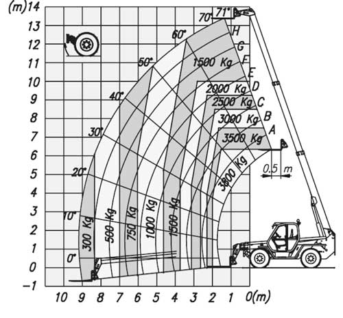 | Hublast bei max Reichweite |