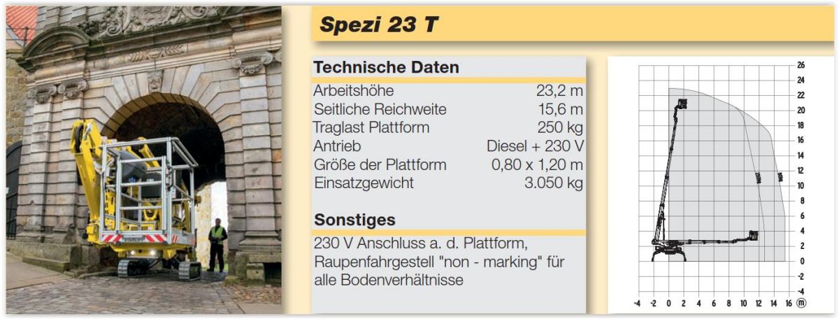 leichten Design erreichen Sie nahezu jeden Einsatzort mit Arbeitshöhen von 15 bis 30 Metern!