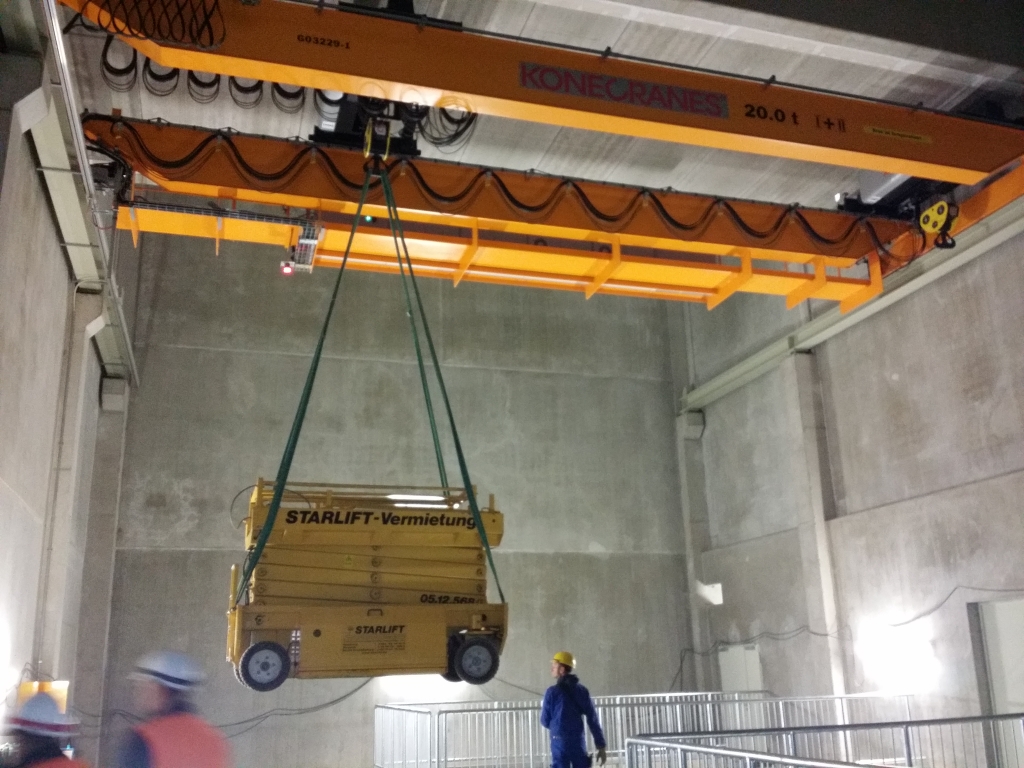 Für Umbauarbeiten in einer Röntgenlaseranlage wurde eine Scherenbühne aufwendig in einem 1,7 Kilometer langen supraleitenden Beschleuniger eingebracht. Bei dieser speziellen Röntgenlaseranlage handelt es sich um eines der weltweit führenden Beschleunigerzentren zur Erforschung der Materie. Sie entwickelt, baut und nutzt Beschleuniger und Detektoren für die Forschung mit Photonen und die Teilchenphysik.