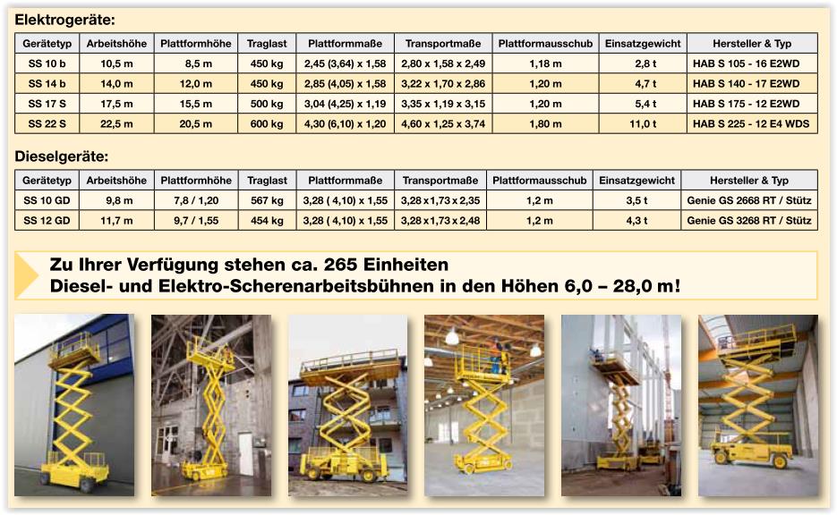Zu Ihrer Verfügung stehen ca. 125 Einheiten Elektro- und Hybrid-Gelenkteleskoparbeitsbühnen in den Höhen 6,0 – 28,0 m!